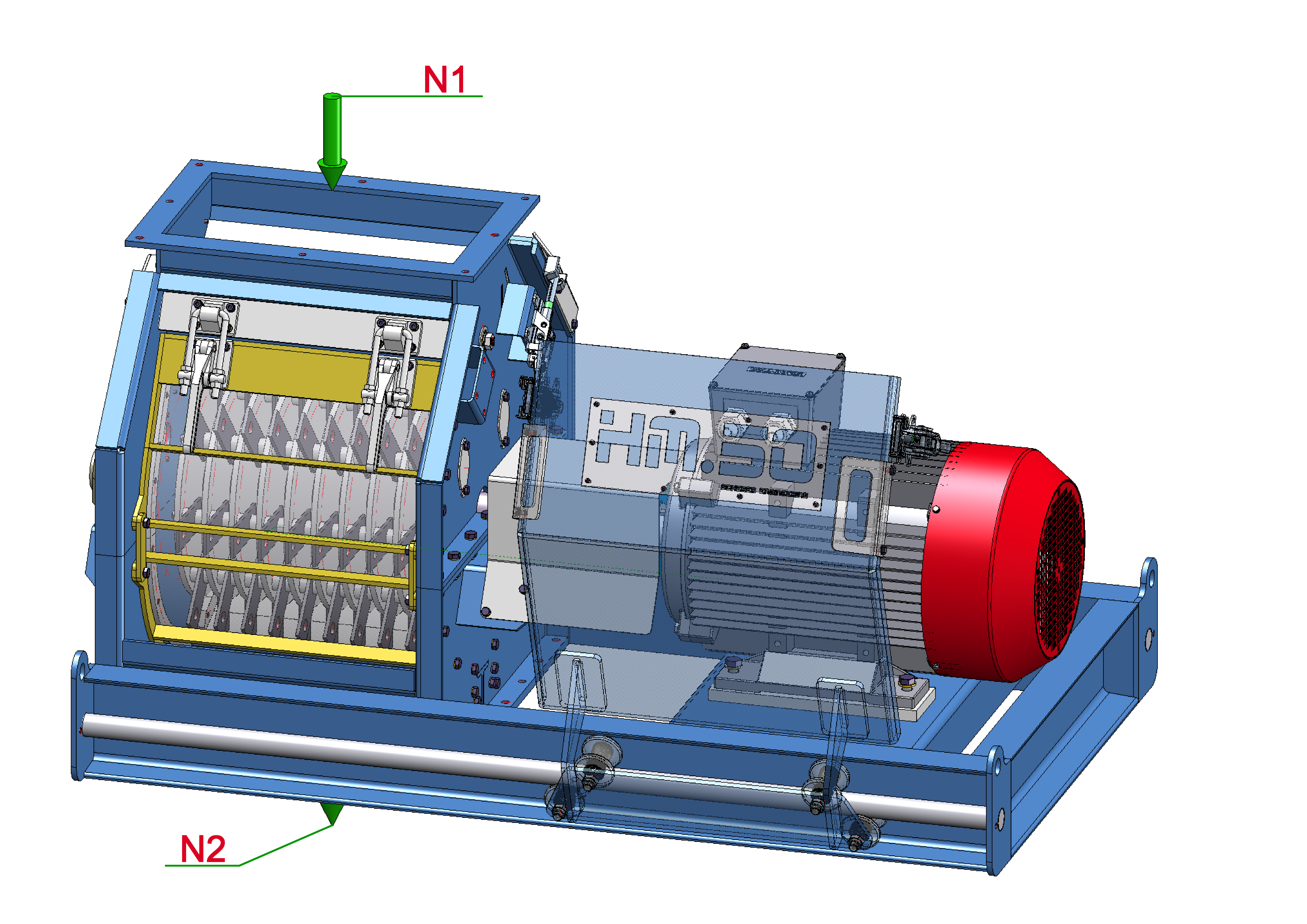 Hammermühle HM.50 zur Zerkleinerung von Biomasse mit elektrischem Antrieb, integriertem Siebkorb und kompakter Stahlkonstruktion